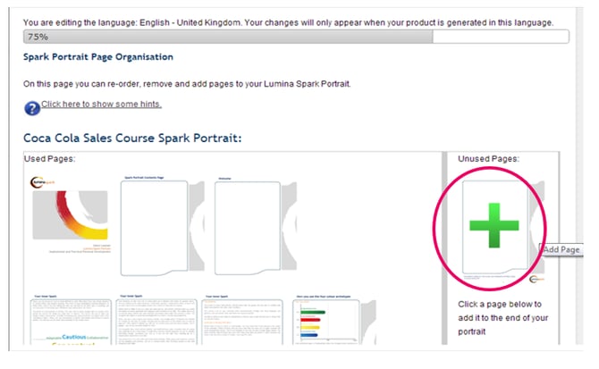 - Sie können dem Lumina Spark-Porträt auch Seiten aus dem Lumina Spark-Arbeitsbuch hinzufügen: