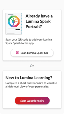 - Open the Lumina Splash app. The first time you use the app, you will be asked Already have a Lumina Spark Portrait? If you do, select Scan Lumina Spark QR