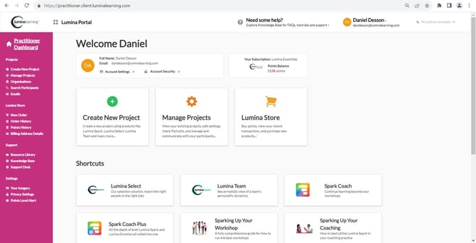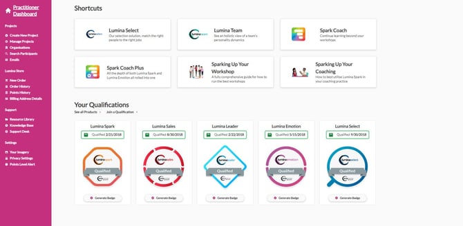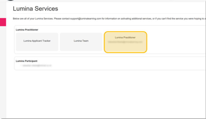 4. Selecteer onder Lumina Services de knop Lumina Practitioner of Lumina Online om uw Practitioner Dashboard te openen.