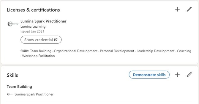 6. Uw Open Badge staat nu op uw LinkedIn-profiel, zodat anderen kunnen zien waar u voor gekwalificeerd bent.