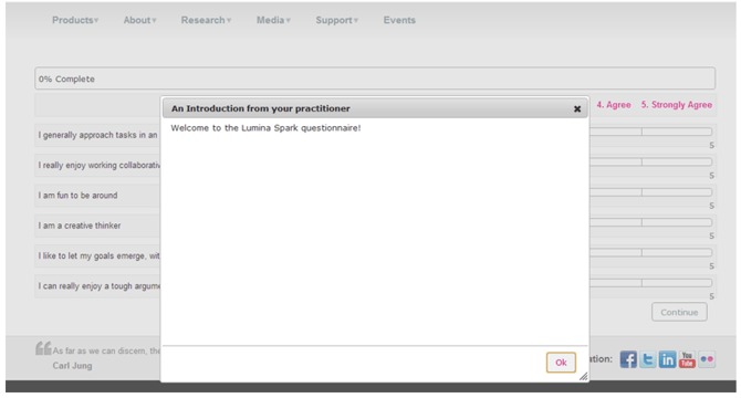 U kunt een introductiebericht toevoegen dat zichtbaar is voor uw deelnemers voordat zij een vragenlijst invullen. De onderstaande afbeelding laat zien wat uw deelnemers te zien krijgen.